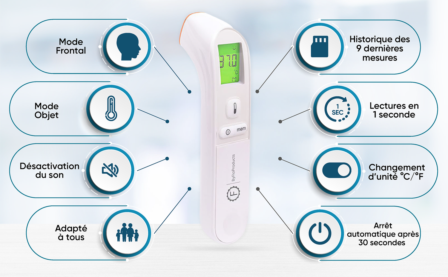 Thermomètre frontal, auriculaire et pour objet ByFloProducts (JPD-FR403)