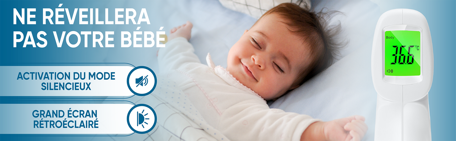 Mode silencieux: Vous pouvez mettre votre thermomètre en mode silencieux pour ne pas déranger votre bébé qui dort.