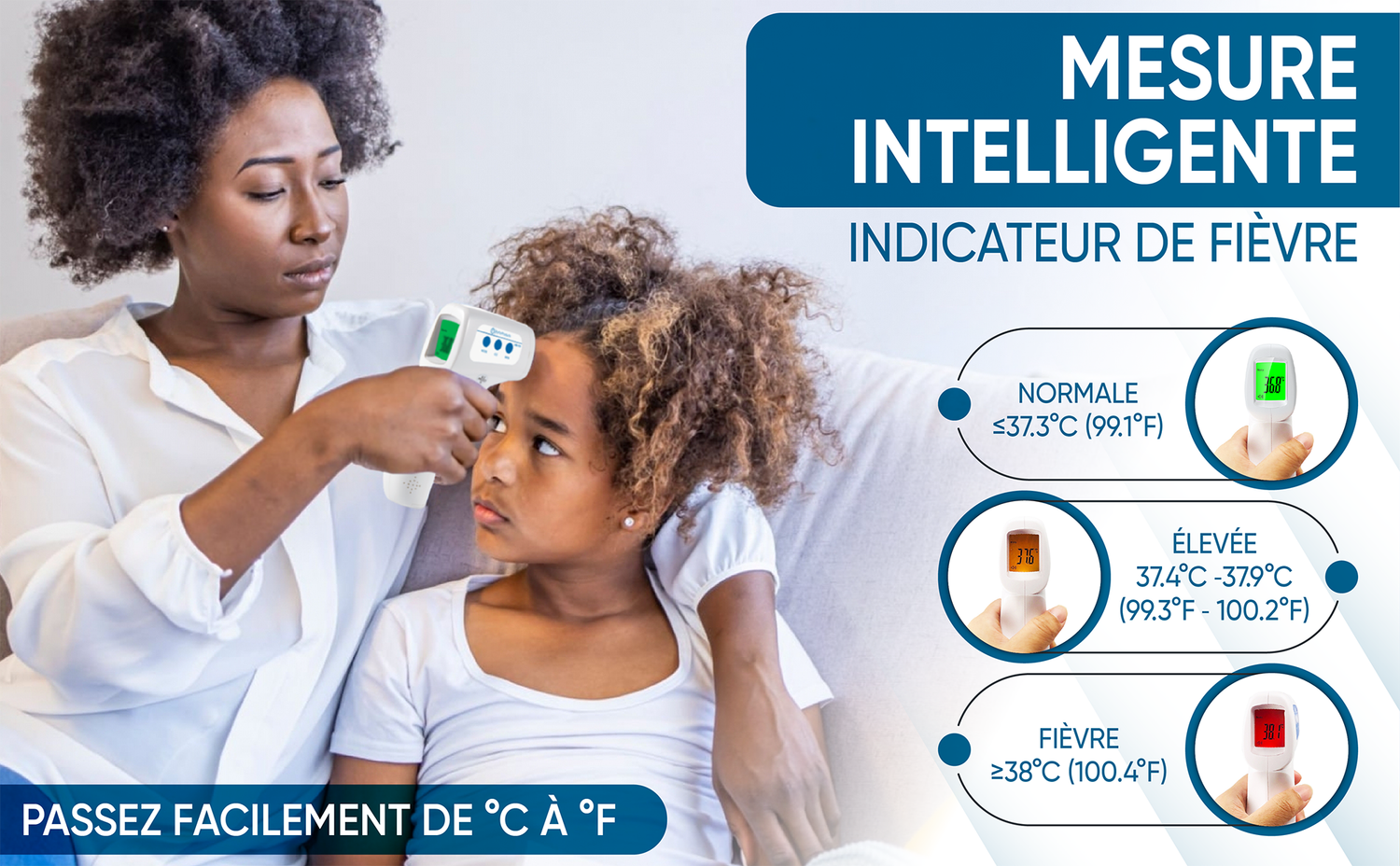 Le design intelligent et les fonctions spéciales - telles que l'alarme de fièvre et la capacité de sauvegarder jusqu’à 20 lectures de température - de notre thermomètre numérique infrarouge en font un incontournable pour toutes les familles.