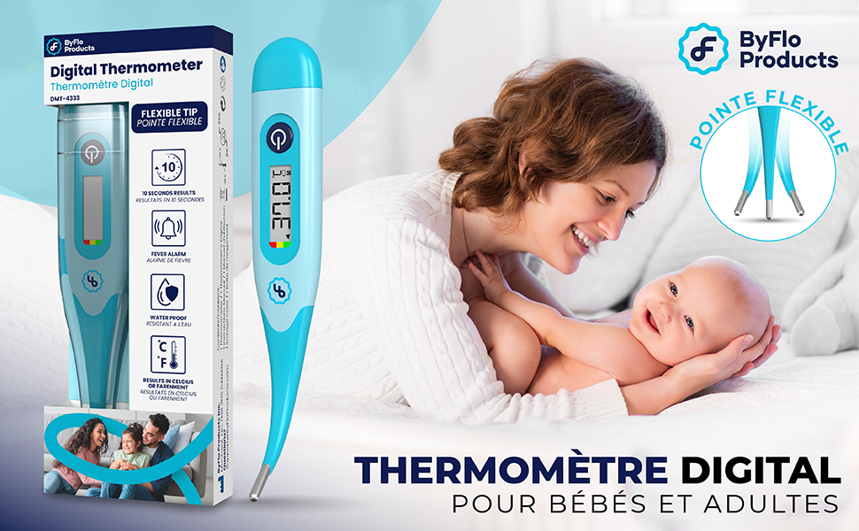 ByFloProducts Thermomètre numérique – Pointe Flexible - Thermomètre oral, rectal et aisselles (DMT-4333 Bleu)