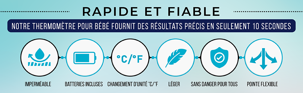 Rapide et fiable : notre thermomètre pour bébé fournit des résultats précis en 10 secondes, vous permettant d'évaluer rapidement la santé de votre famille. Avec la flexibilité d'une utilisation orale, rectale ou sous les aisselles, c'est le choix fiable pour des lectures précises de température.