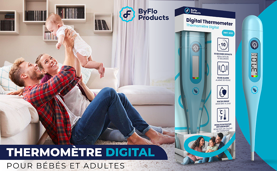 ByFloProducts Thermomètre numérique – Thermomètre oral, rectal et aisselles (DMT-4132 Bleu)