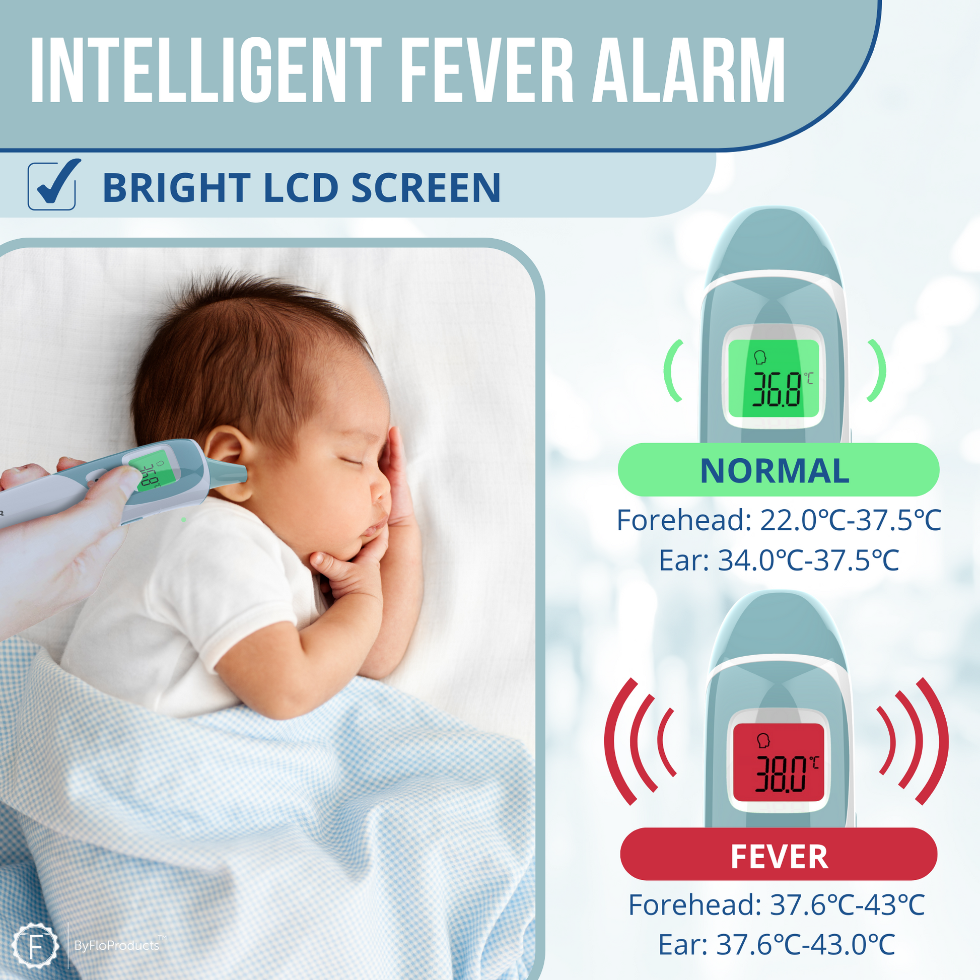 Fever alarm: Our digital thermometer is equipped with a Fever Glow fever alarm. The green/red backlight display and sound alarm will alert you to any fever spikes.