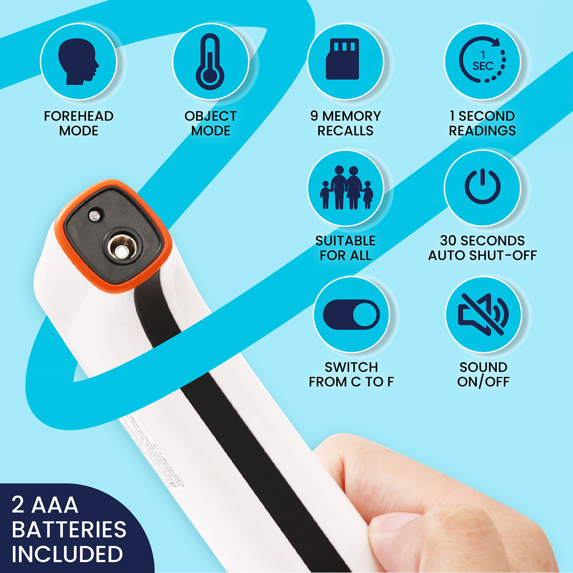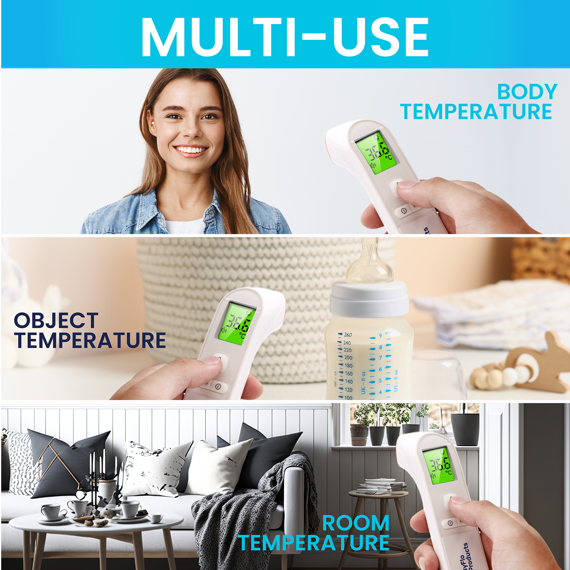 2-in-1 modes: Our thermometer offers 2 different modes for temperature measurements: Forehead and Object.