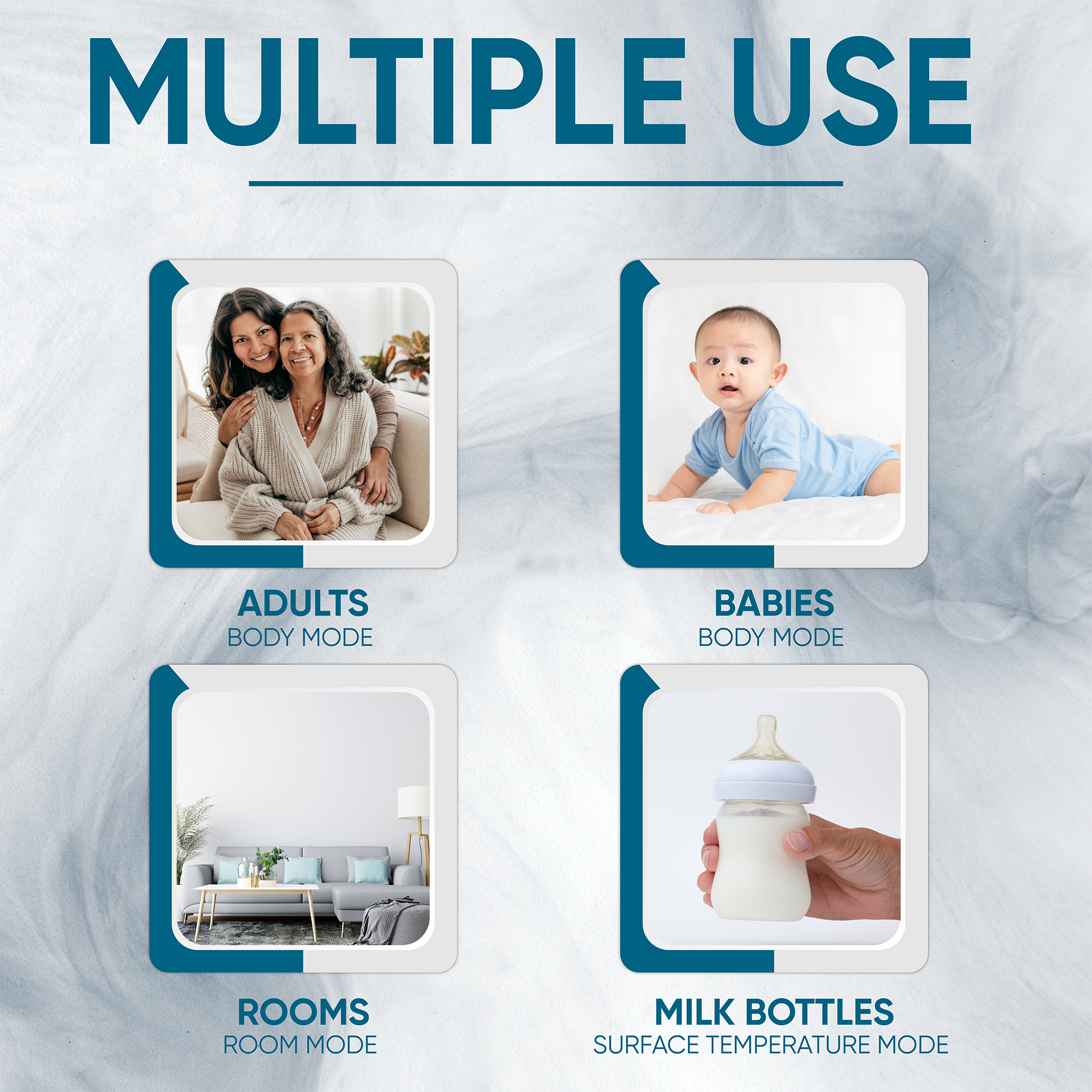 3-in-1 modes: Our thermometer offers 3 different modes for temperature measurements: Body; Surface (for objects); and Room.