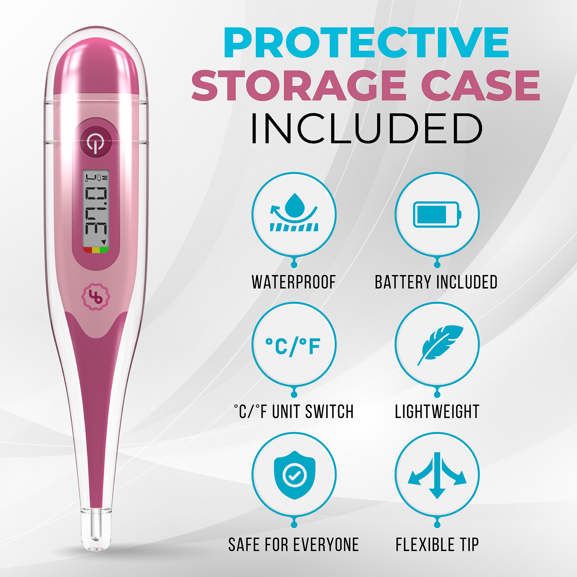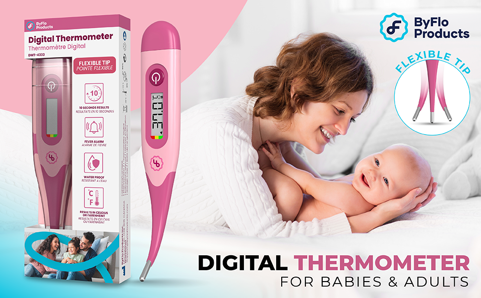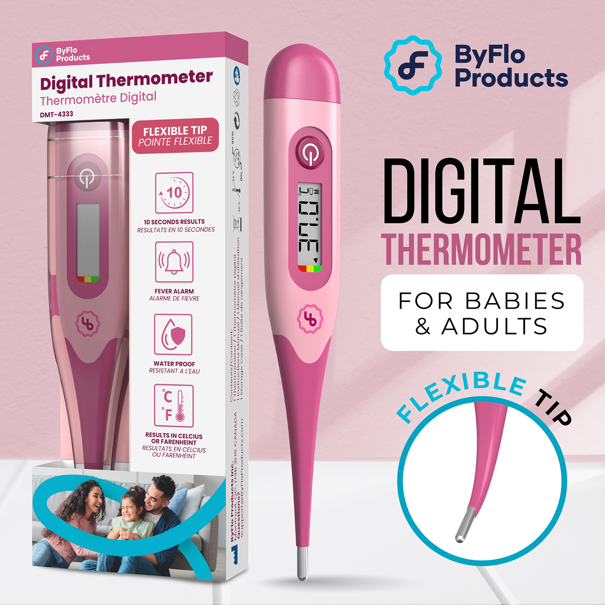 ByFloProducts Digital Thermometer - Flexible Tip - Oral Thermometer, Rectal & Underarm (DMT-4333 Pink)