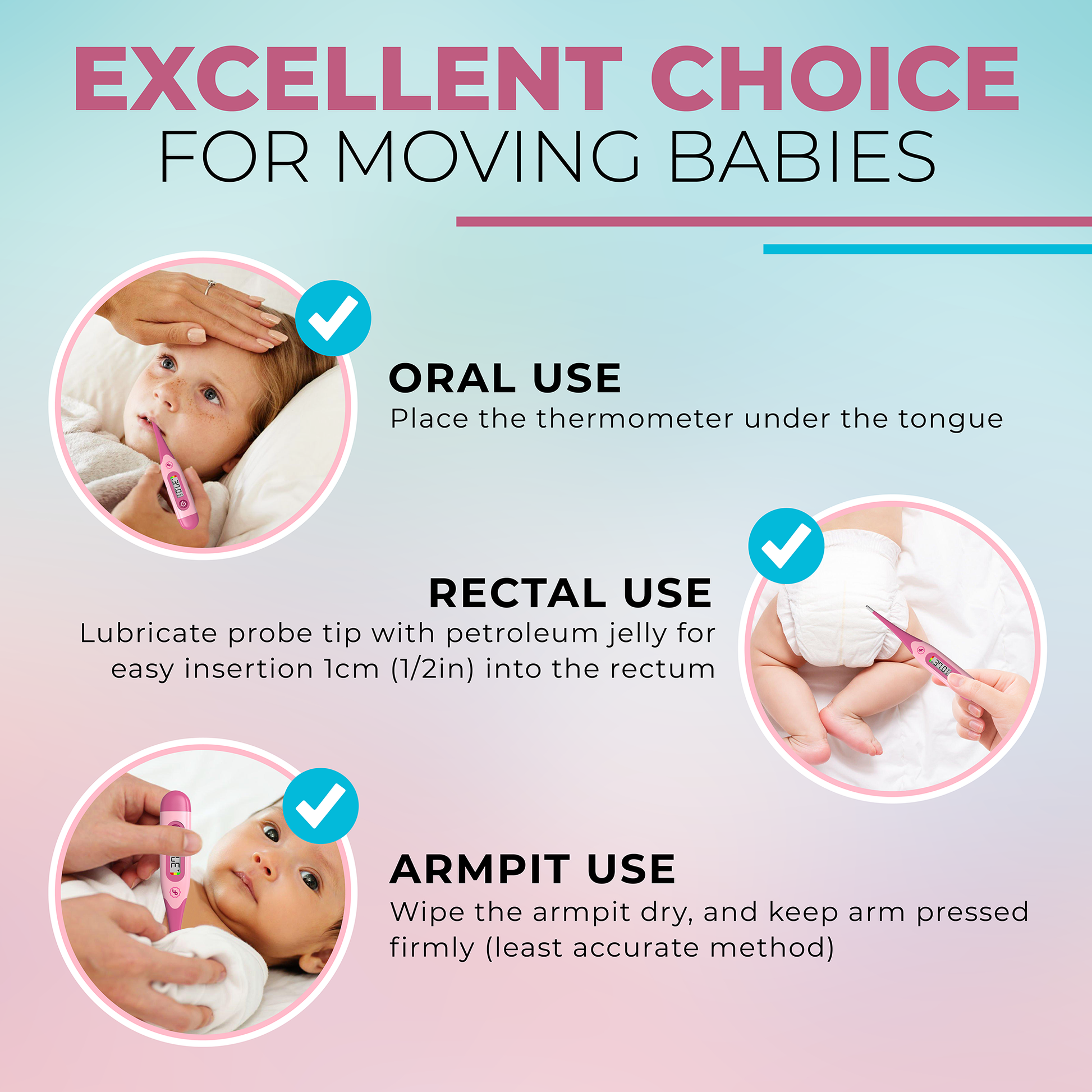 Precision Meets Flexibility: Get accurate temperature readings to within +/- 0.1C with the added comfort of a flexible tip. Our digital thermometer ensures a comfortable and safe experience, making it an excellent choice for moving babies or as a basal body thermometer.