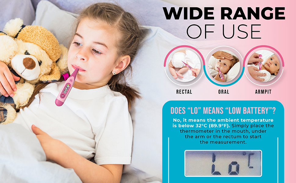User-Friendly Design: Featuring an auto shut-off, low battery alert, and last reading memory, this oral thermometer ensures convenience at every step. With the option to switch from Celsius to Fahrenheit, a clear LCD display, and lightweight design, it's hassle-free to use.